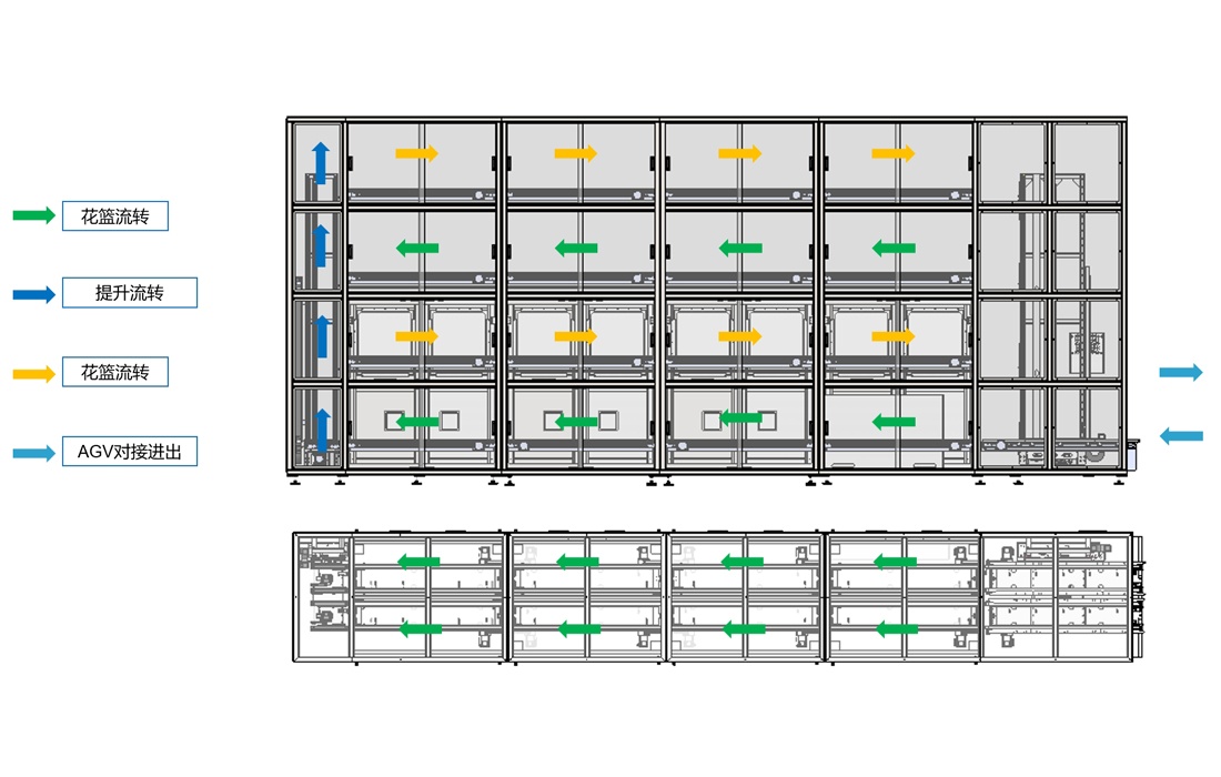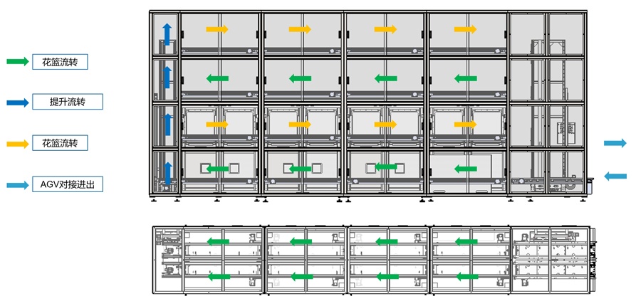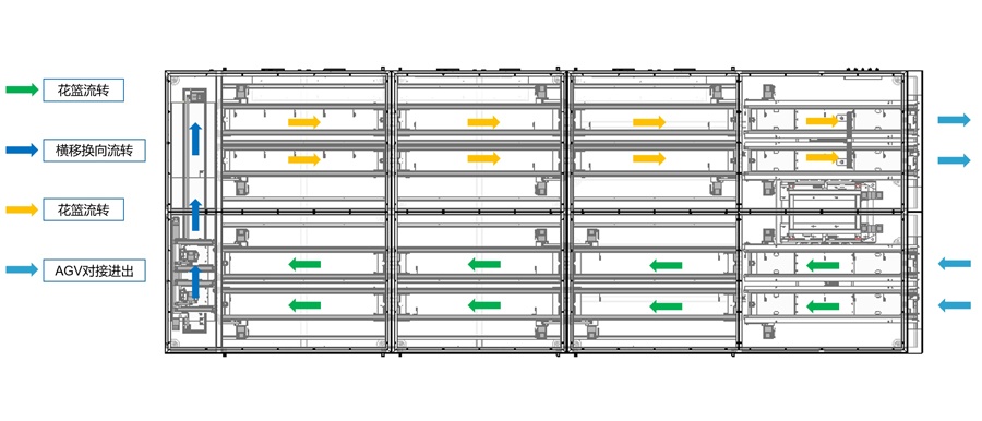 ·花籃實現(xiàn)對接AGV周轉(zhuǎn),無需人工搬運;